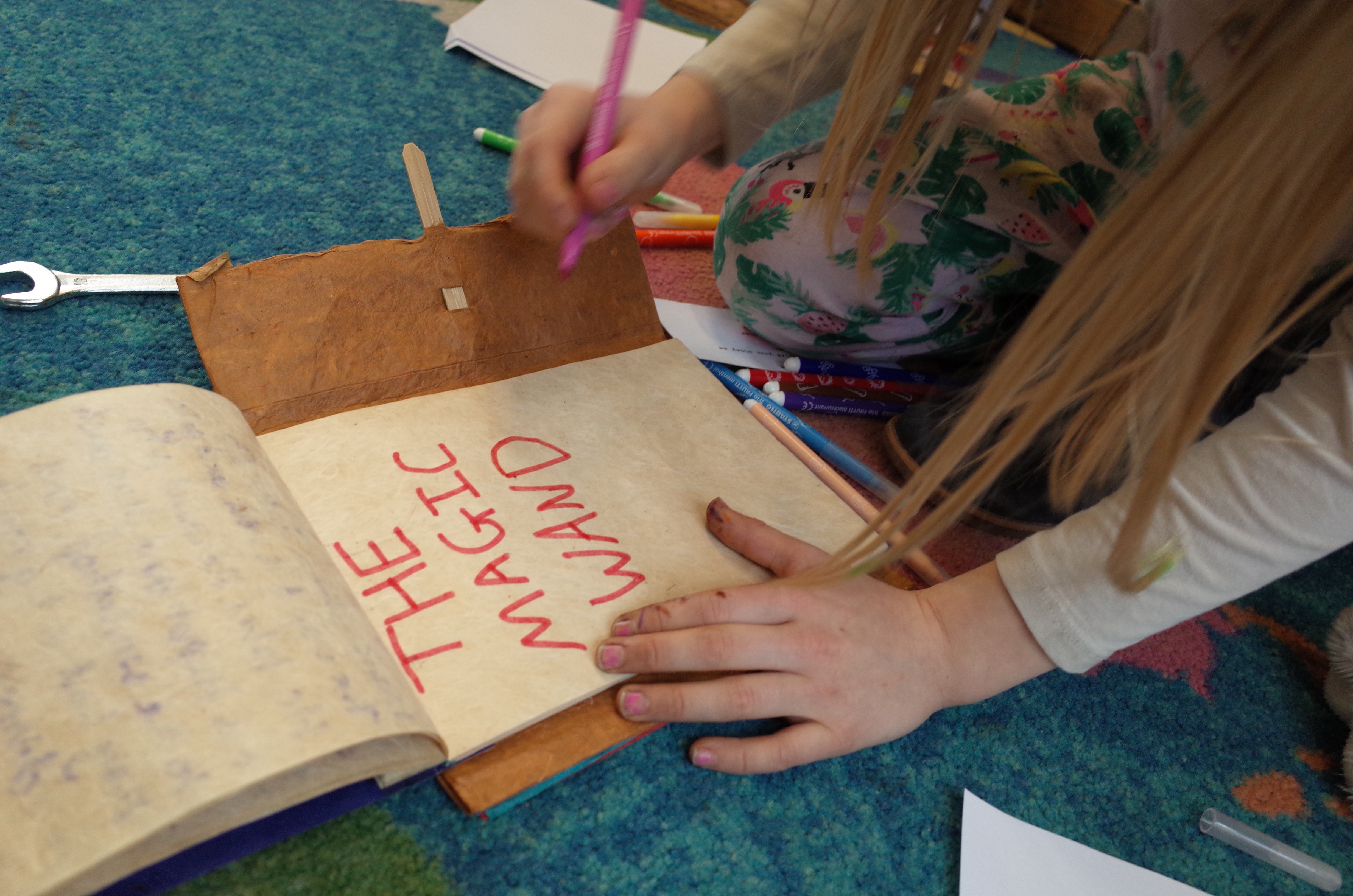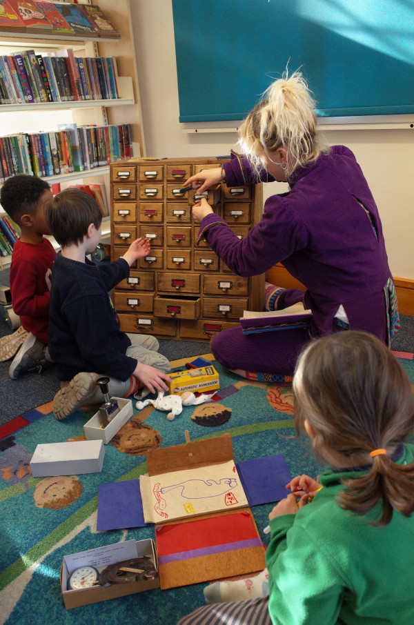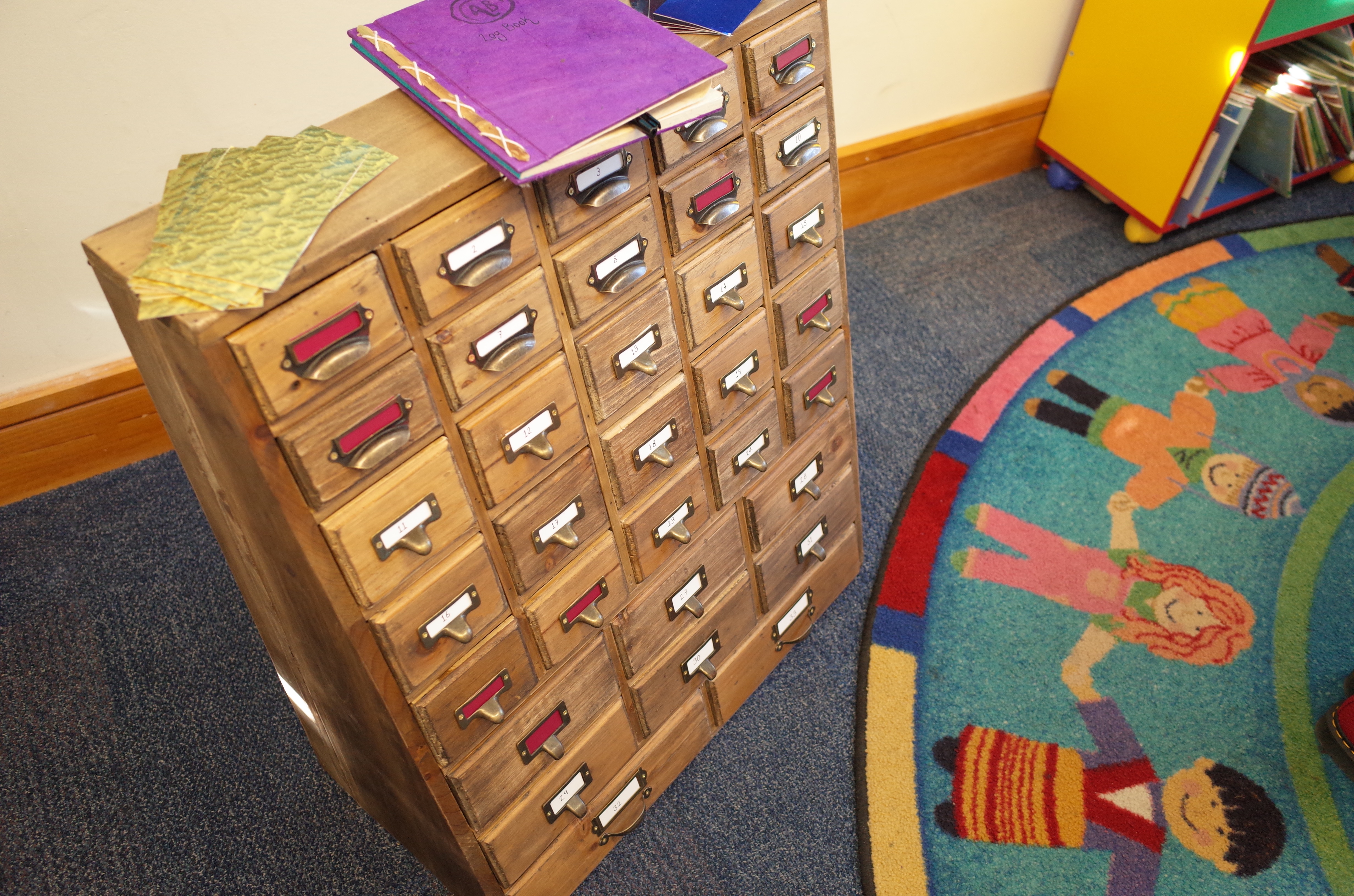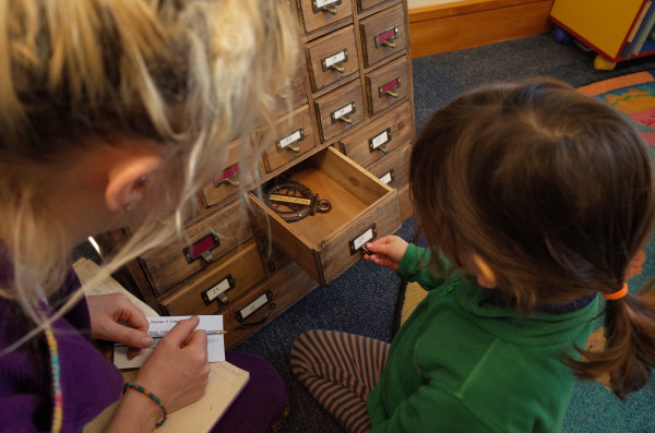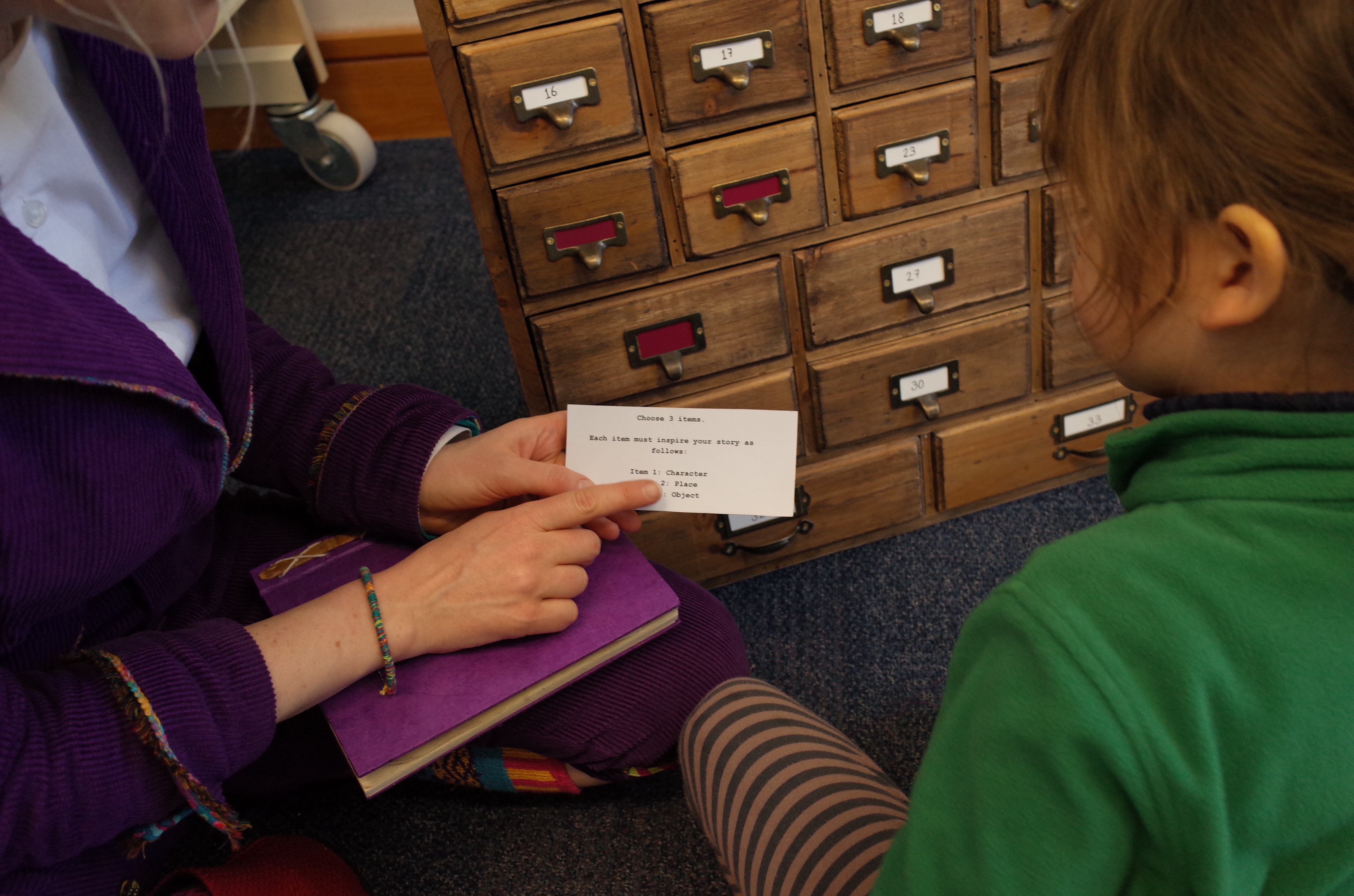 This is a wooden case of drawers full of ideas in each pocket. The pop-up bureau is taken to different places for people to come and explore, delve into, and create their own adventures from the curious objects within. There are always at least 2 members of the bureau on hand to guide new adventure creators in their quest to form stories. The process is to gather several items from the chest of drawers, use them to spark ideas for components of a story, then create a totally new adventure using these components. The story is either written, drawn or spoken and then filed away at Adventure Bureau HQ.
